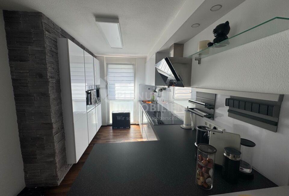 Die offene Einbauküche ist ein Highlight der Wohnung und lässt keine Wünsche offen. Sie ist mit hochwertigen Geräten, einschließlich eines integrierten Kaffeevollautomaten, ausgestattet und bietet ausreichend Platz für kulinarische Genüsse. Der angrenzende großzügige Essbereich lädt zu gemütlichen Mahlzeiten ein.