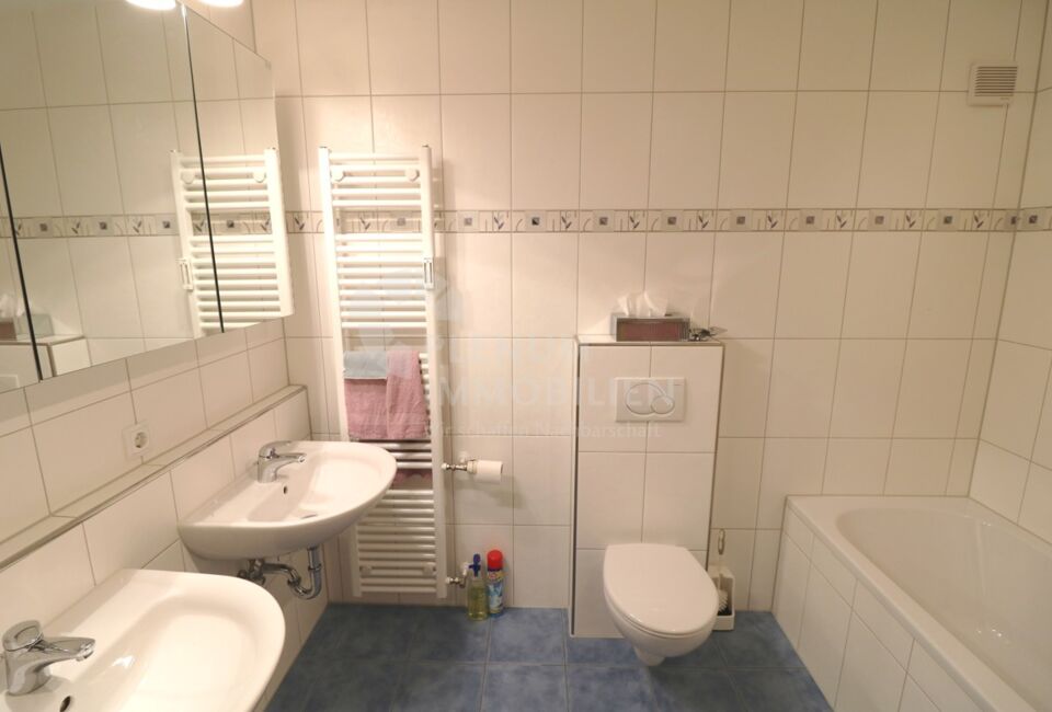 Das Obergeschoss verfügt über ein großzügiges Elternschlafzimmer mit Zugang zum ostseitig gelegenen Balkon. Zwei weitere Zimmer eignen sich ideal als Kinder-, Gäste- oder Arbeitszimmer. Das modernisierte und deckenhochgeflieste Badezimmer ist mit einer Badewanne und Dusche, sowie zwei Wachbecken ausgestattet.