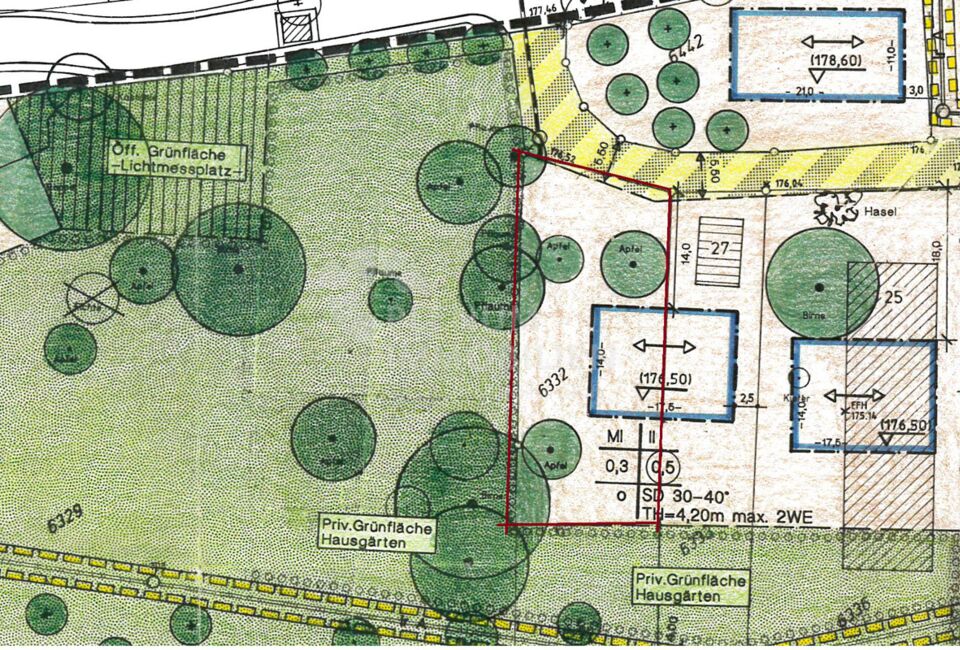 Bebauungsplan ist vorhanden. Bei Wunsch gerne Einsicht.