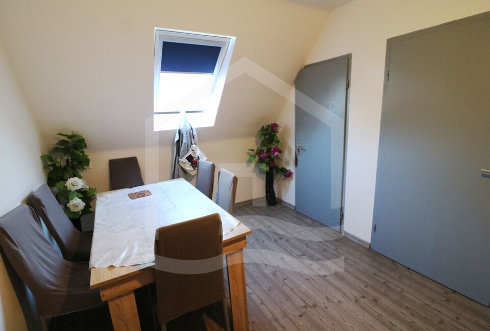 Zuletzt haben wir noch die Dachgeschosswohnung. Sie misst ca. 68 m² und es genau wie im EG auf 3,5 Zimmer aufgeteilt. Ein sehr großes Badezimmer, Wohnbereich, 2 Schlafzimmer und eine offene Küche bieten hier viel Platz zum wohlfühlen. Ein kleiner separater Abstellraum ist ebenfalls vorhanden.