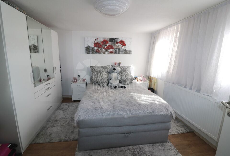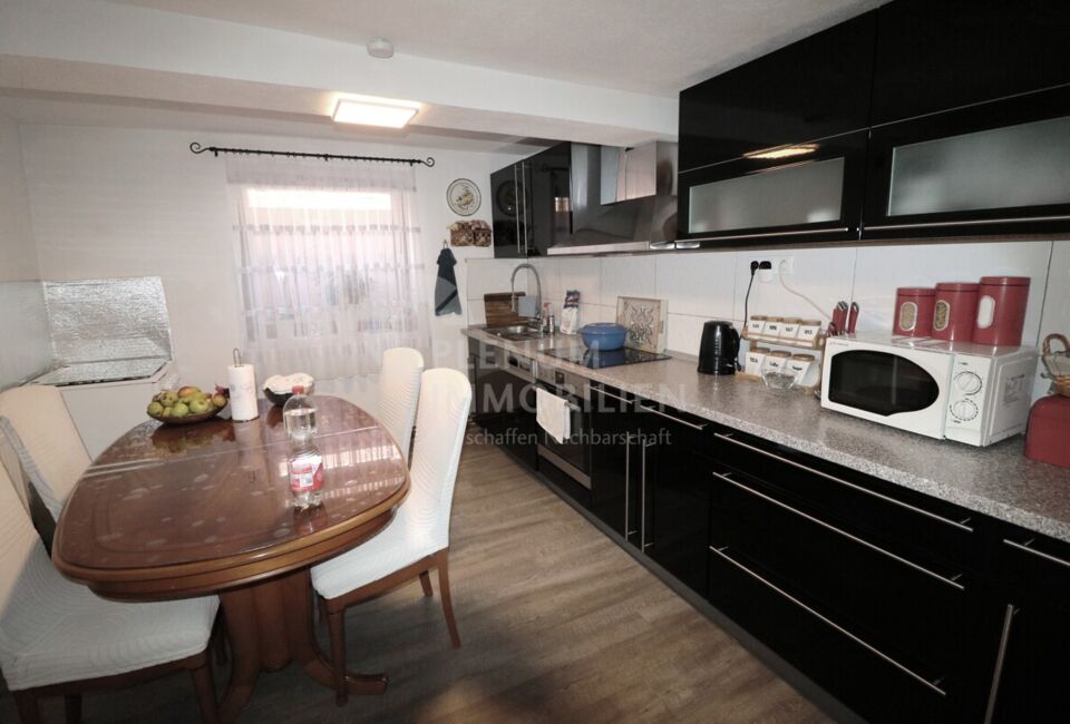 Im Obergeschoss erwartet Sie ein lichtdurchfluteter, großzügiger Wohnbereich, drei Schlafzimmer, ein Badezimmer mit Duschwanne sowie eine moderne, hochwertige Einbauküche. Der nach Südosten ausgerichtete Balkon lädt zum Verweilen im Freien ein und bietet zusätzlichen Wohnkomfort.