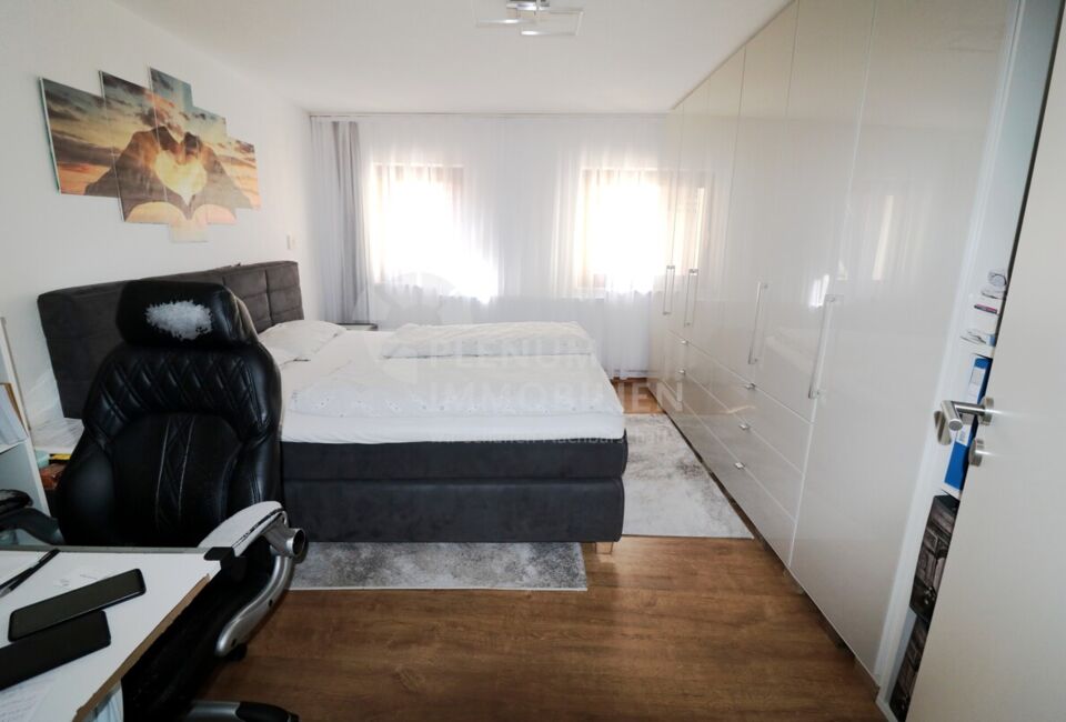 Die dritte Wohneinheit im 2. Obergeschoss verfügt über ein gemütliches Wohnzimmer, drei Schlafzimmer, eine großzügige Wohnküche sowie ein Badezimmer mit Duschwanne. Ein zusätzliches, abgetrenntes Büro- bzw. Arbeitszimmer bietet hier ideale Voraussetzungen für Homeoffice oder individuelle Nutzung.